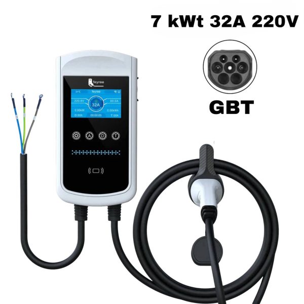 Однофазный Feyree Wallbox GBT – это удобная и эффективная зарядная станция для электромобилей, рассчитанная на мощность до 7 кВт. Идеальный выбор для домашнего использования или небольших коммерческих объектов? стационарное автомобильное зарядное устройство для электромобиля Wallbox 7 кВт. – штекер подключения GBT.